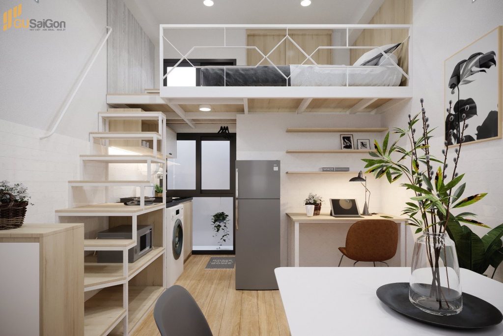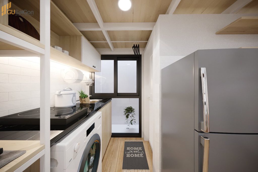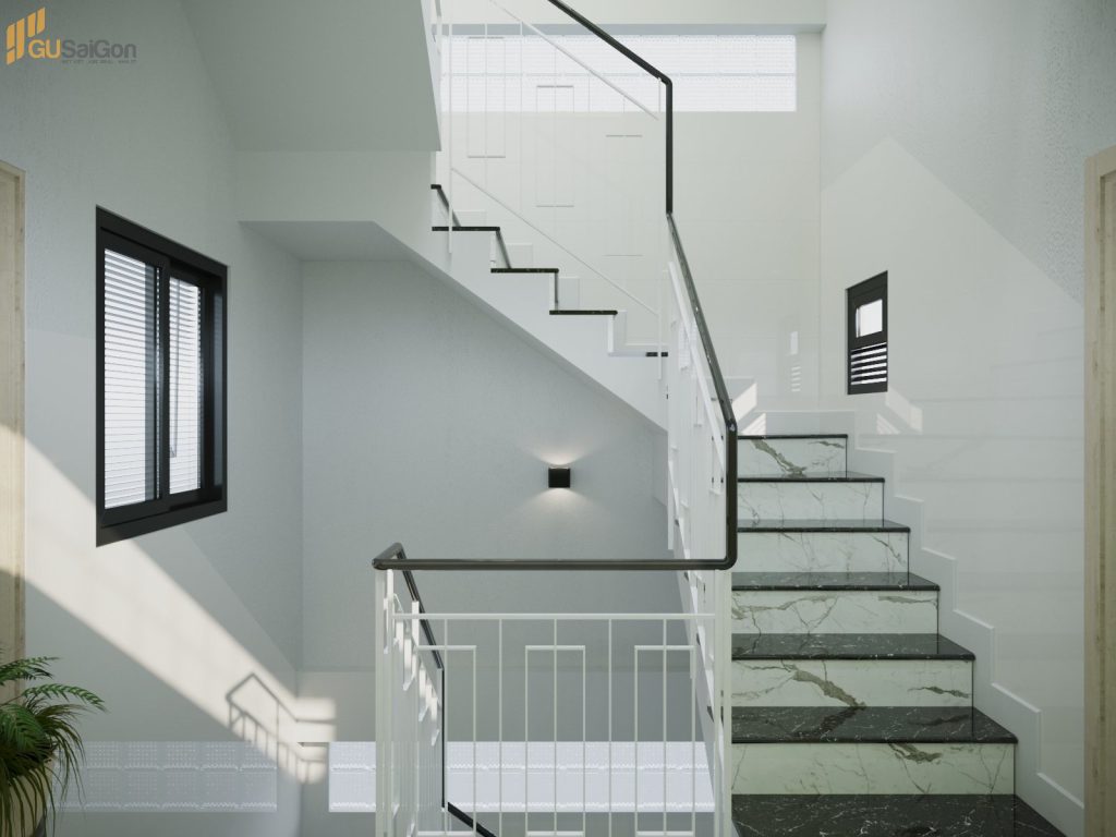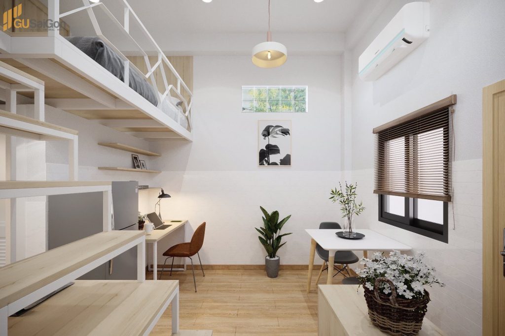 Công năng mỗi tầng gồm có 2 căn hộ dịch vụ full nội thất. Do đặc thù căn nhà có bề ngang nhỏ nên Gu Sài Gòn quyết định chỉ làm cầu thang một bên để tối ưu được diện tích giao thông.