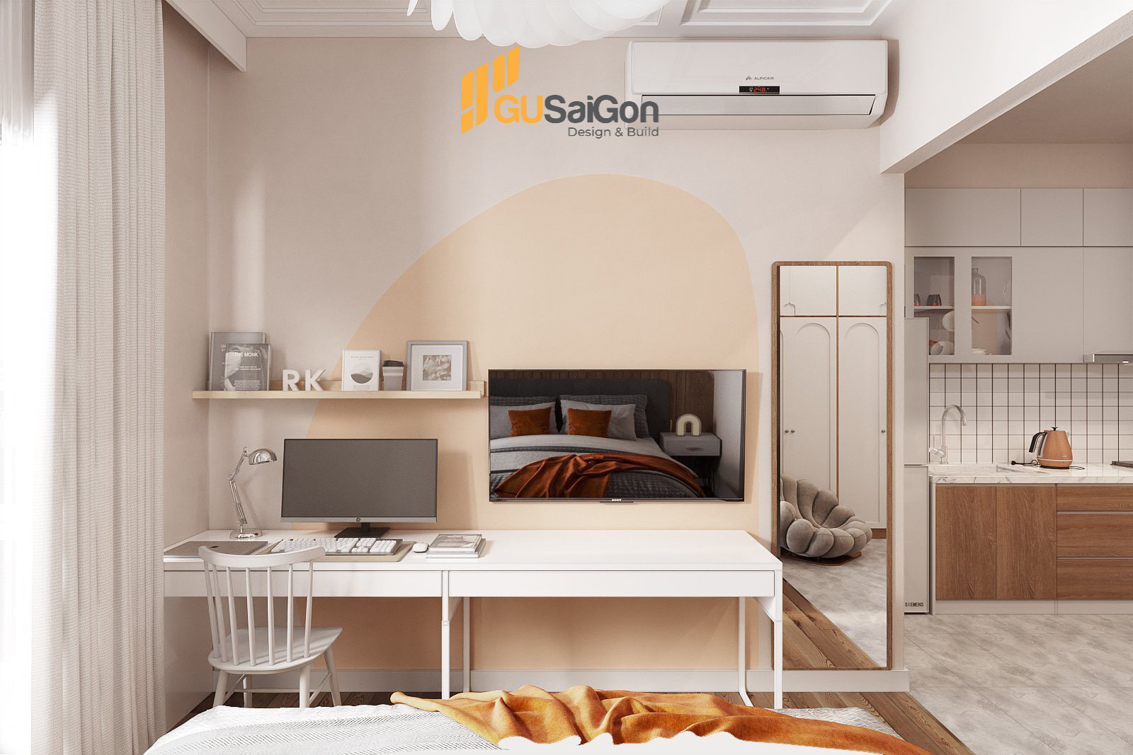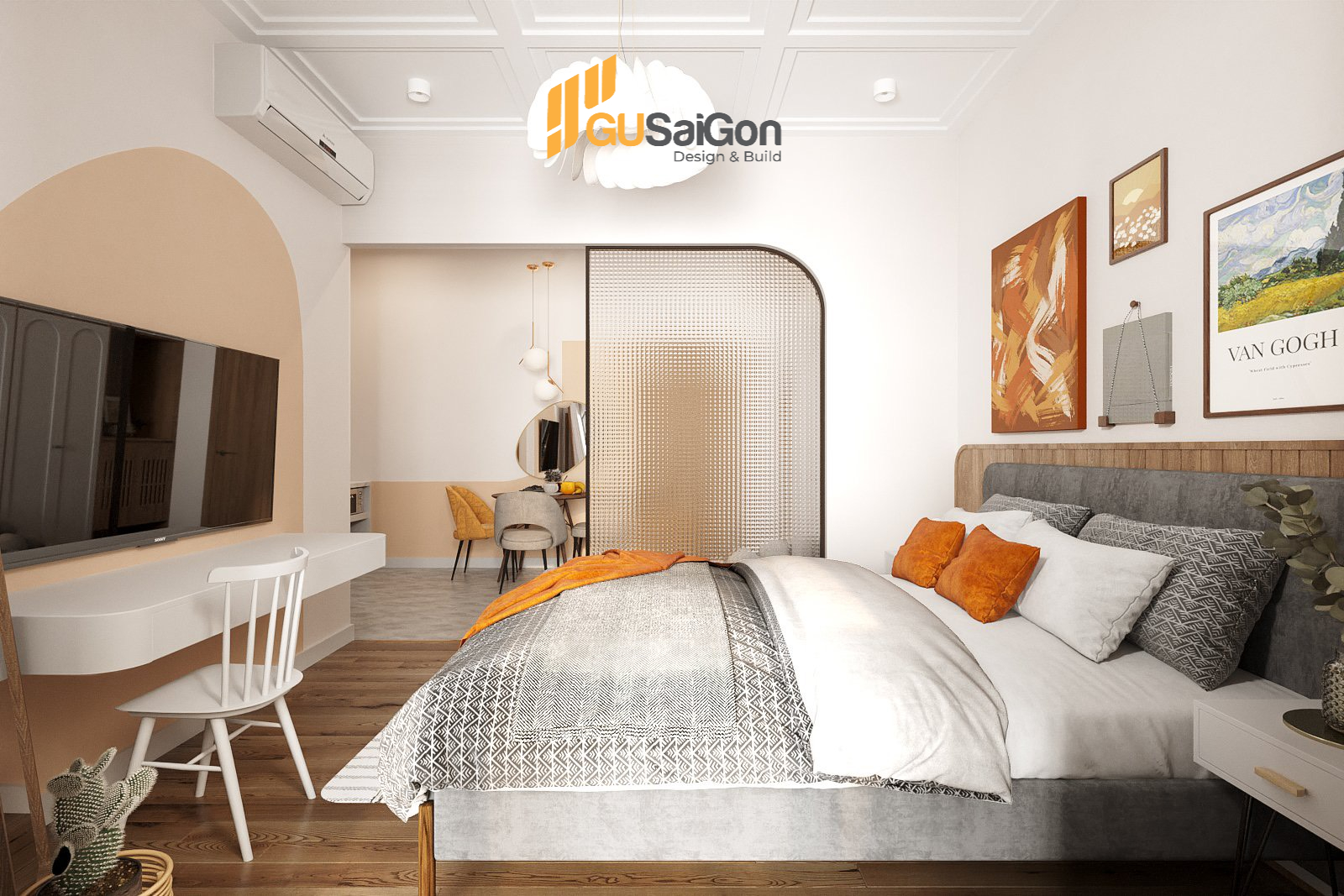 Dưới sự bố trí và sắp xếp tinh tế của Kts Gu Sài Gòn nhằm mang đến không gian thoải mái, tinh tế và nghệ nhất có thể. Từng chi tiết nội thất trong nhà đều là nét điểm xuyến tạo nên tổng thể không gian không thể tách rời.