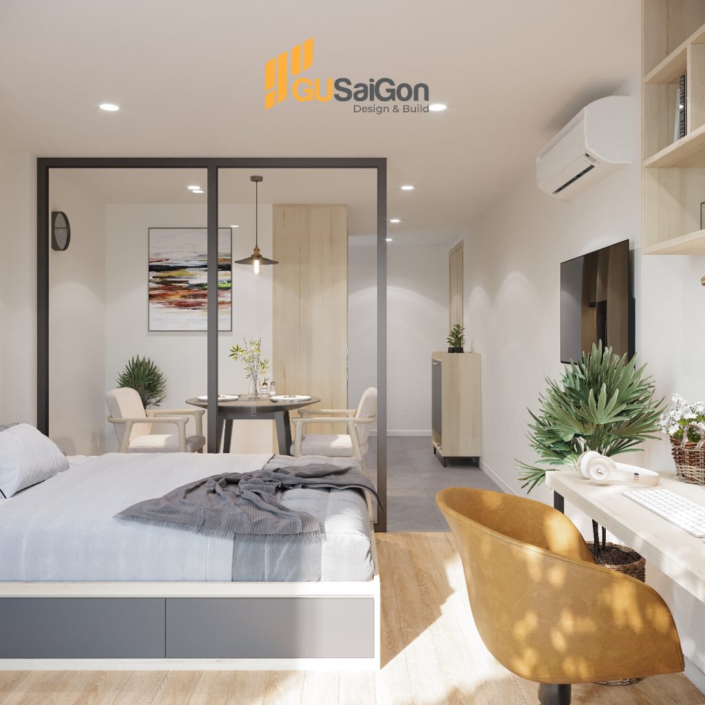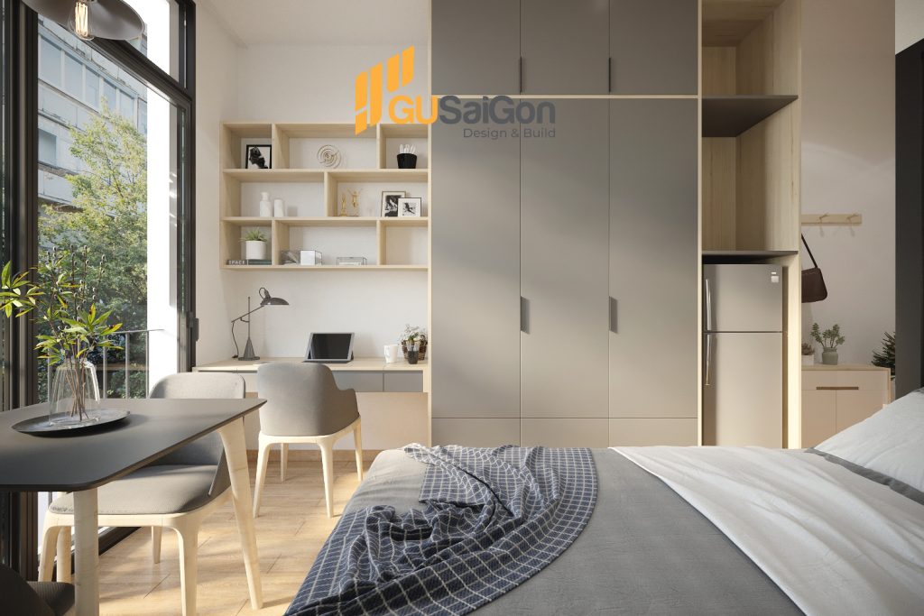 Không gian giường ngủ và bàn làm việc