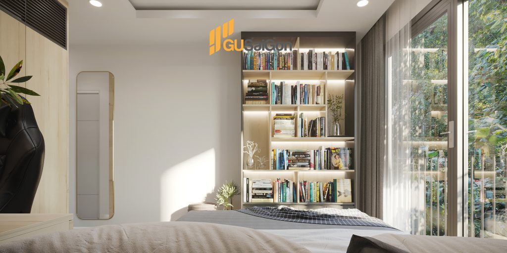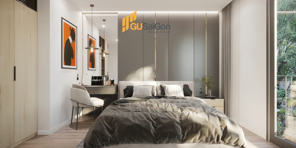 Để giải quyết vấn đề bí bách và thiếu sáng cho những căn nhà phố. Các căn phòng đều được Kts của Gu Sài Gòn thiết kế hệ cửa kính lớn giúp lấy được ánh sáng tự nhiên tối đa cho căn phòng.
