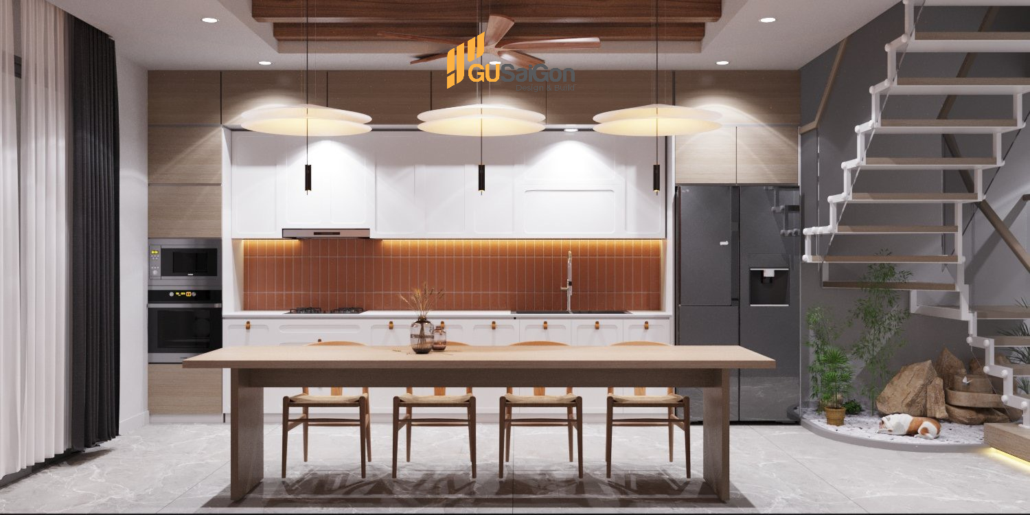 Gu Sài Gòn đã và đang từng ngày phá vỡ định kiến trên. Để không gian nhà luôn rộng và thoáng, kiến trúc sư đã áp dụng thiết kế mở và giải quyết được vấn đề thường gặp của nhà phố là bí bách. Bằng cách loại bỏ những vách tường phân chia công năng như những mẫu nhà kiểu cũ, kết nối các không gian với nhau một cách trực quan. Từ vị trí phòng khách, gia chủ có thể thấy được phòng bếp và ngược lại.